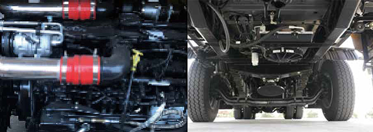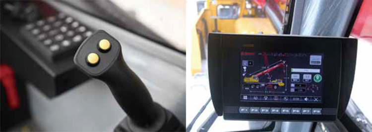 ■ Emergency steering, superstructure emergency stop, and slewing buzzer and light warning ensure safety of people on and around the crane.